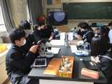 2月9日の1年生の理科の授業では、鉱石の観察をしました。 顕微鏡で試料を観察...