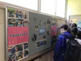2年生の掲示板に職場体験の写真が紹介されています。 それぞれの活動の様子を見入る...