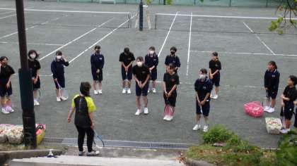 今日は、時折雨が降る天候でしたが、部活動の時間はほとんど降らず、外の部活動も予定どおり行うことができました。薄暗い空のもとでしたが、生徒たちは感染対策をしながらも、声をかけあい、元気に活動していました。