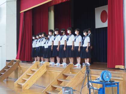 意見発表では、2年生と3年生の代表生徒が、実体験を通して感じたこと、その経験を生かして今後頑張りたいことを、立派に発表してくれました。