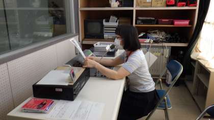 毎週火曜日には、学校図書館司書が来校し、昼の放送で本の紹介などをしてくれます。また、図書館ボランティアの方々と一緒に、活用しやすい図書館づくりのために取り組んでくれています。