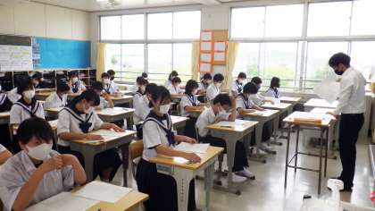 今日から2日間、中間テストが行われています。今日は3教科のテストを実施しました。あと2教科、力を出し切ってほしいものです。給食中には、福祉委員会から、募金への協力のお礼を伝える放送がありました。集まったお金は、日本赤十字をとおして、ウクライナ支援に生かされます。