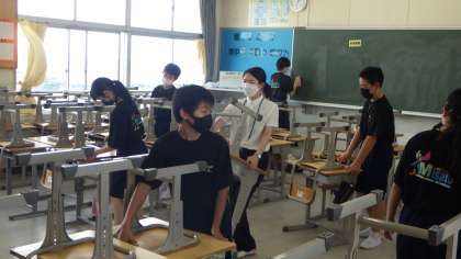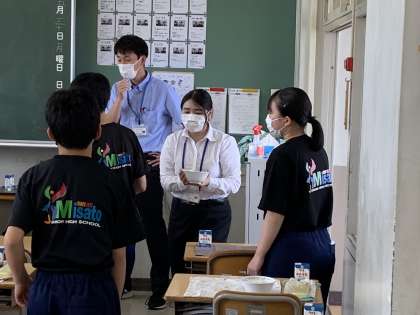 本日から、3名の教育実習生が本校で実習を開始しました。緊張しながらも、生徒とともに給食や清掃などに取り組み、笑顔で頑張っています。