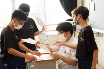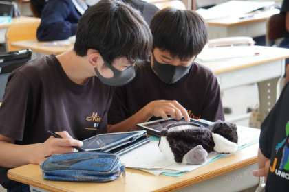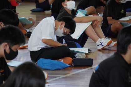 2年生が職場体験に向け、学年集会を行いました。担当の先生から職場体験に向けての注意事項などを聞きました。その後、教室に戻り、体験する事業所への行き方などを、再度、確認していました。