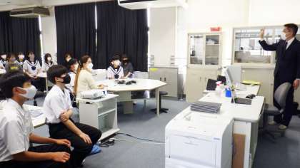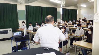 5月31日(火)、午後から3年生の保護者と生徒を対象にした高校説明会を実施しました。まずは、公立高校11校の説明を行い、一人2校のお話を聞きました。後半は、私立専修学校と、国立豊田工業高等専門学校およびトヨタ工業学園、計10校の説明を、やはり一人2校聞きました。説明を聞いた3年生に感想を聞くと、「とても興味深い話が聞け、おもしろかったです」とこたえてくれました。先生方の案内すを任された生徒たちは、しっかり役割を果たし、高校の先生方からお褒めの言葉をいただきました。