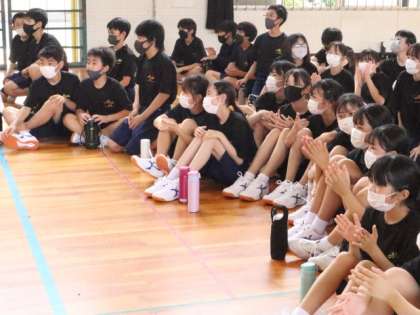 6月9日(木)、1年生が学年レクリエーションを行いました。じゃんけん大会、クイズ大会、ドッチボール大会を、級長会の企画・進行で実施しました。ドッチボール大会の上位入賞クラスには、学年主任から賞状が授与されました。笑顔あふれる楽しい会となりました。