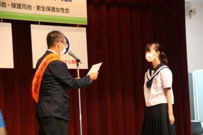 6月26日(日)、「社会を明るくする運動 美里地区大会」が、美里交流館で行われました。地域の依頼受け、2年生と3年生の代表者が意見作文を発表しました。3年生の代表者は、市内大会出場のため、録画での参加となりました。2年生の代表者は、堂々と自分の意見を発表し、大きな拍手をうけていました。