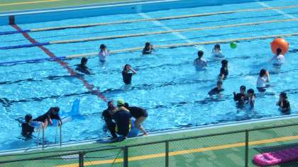 また、6月27日(月)、水泳の授業が行われました。3年生は、今日は、女子がプールでの授業を行っていました。着衣泳を学んだあとは、中学校初めてのプールを堪能する自由時間を過ごしていました。