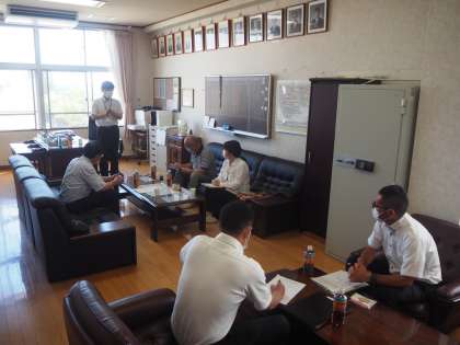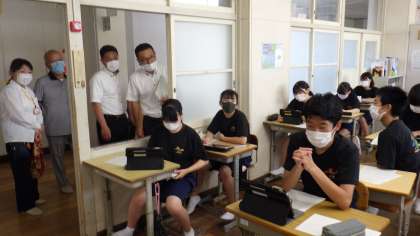 本日、美里地区の保護司である3名の方に来校していただき、「保護司さんと語る会」を実施しました。最初に、全学年の授業を参観していただきました。続いて、特別支援学級の「八賀喜屋」にご案内し、特別支援学級の生徒の取り組みに触れていただきました。その後、校長室に移動し、美里中学校の様子をお伝えするとともに、保護司の皆様と情報交換を行いました。
