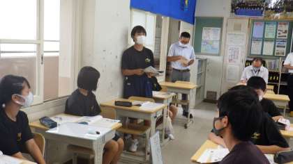 今日は、2年生のクラスで、市内指導員の先生をお招きして、道徳の研究授業を行いました。生徒たちは、トイレ工事の音に負けず、授業に集中していました。今日、指導員の先生から学んだことを、先生たちが課題を共有して今後の授業で活用できるよう、工夫していきます。