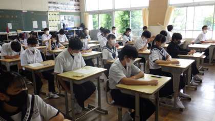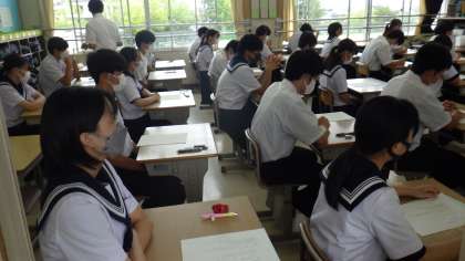 7月14日(木)、3年生が今年度1回目の学習診断テストに臨みました。昨年までは、9月に1回目を行っていました。今年度から、入試の日程がかわったことに合わせ、学習診断テストの実施日が早くなっています。日頃の学習の成果が発揮されたことを祈っています。