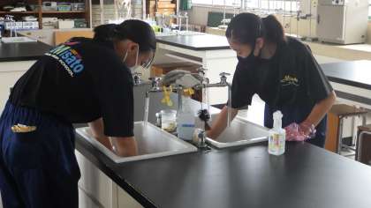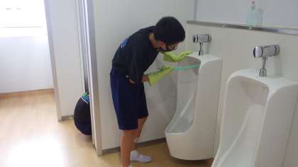 1年生は、総合的な学習の時間で、「地域貢献」をテーマに掲げて学習に取り組んでいます。昨日は、各クラス、活動内容や場所、夏休み中にできることなどを確認し合いました。1年1組は、地域での清掃活動を考えており、まずは学校をきれいにしようと、密を避けながら、汚れが気になる箇所に分かれて、清掃を行いました。小学校での取り組みを生かし、とても効果的な清掃方法が提案され、活動後は、見違えるほどきれいになっていました。9月以降、1年生全体で、実際の地域貢献活動を行う予定です。