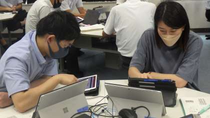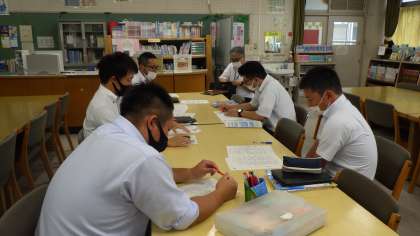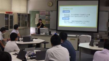 8月18日(木)、先生たちの校内研修会を行いました。まずは、教科ごとに分かれて、9月に行われる学校訪問・授業参観で公開する授業の指導案検討会を行いました。続いて、道徳科推進校内研修、ICT機器の新しい機能の説明会を行い、市の研修会で学んできた教員が講師となって研修を進めました。9月からの授業に備え、先生たちの学び合いを大切にしています。