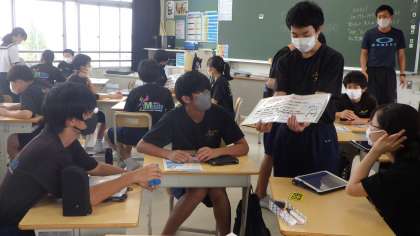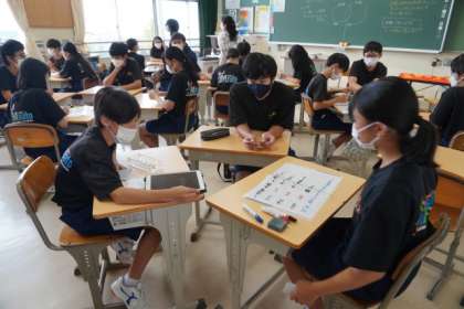 ミサトークの目標が「意見を出す」からステップアップして、「意見を深める」ことを目指します。「理由を明確にして考えを伝える」「司会者が共通点や相違点を見つけ、意見が深まるよう促す」「記録者が意見や理由を構造的に記録する」。それぞれの生徒に役割が与えられ、班としての意見をまとめていきます。継続は力なり。まずはやってみよう。