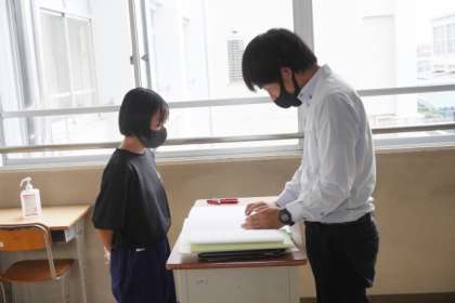 前期終業日の今日、担任から生徒に通知表が渡されました。前期の学校での様子は、昨日までの三者面談で伝えています。今一度、通知表を見て、前期を振り返り、後期の目標を定めましょう。
