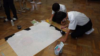 今月末の体育祭に向け、朝、学級旗づくりを行っています。今週金曜日からは、体育祭特別日課が始まります。お互いを思いやりながら活動し、「一人一人にとって心地よいつながり」を紡いでいきましょう。