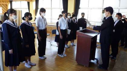 10月20日(木)、朝の会の前に、地域ルームを使って、委員長・議長と副委員長・副議長の認証を行いました。先週の全校集会後に、後期1回目の委員会を実施したため、本日の認証となりました。一人一人、立派な態度で臨んでいる姿にふれ、後期の活動に期待が膨らみました。