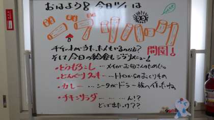 今日の給食は、ジブリパーク開園を記念したメニューでした。朝から学年フロアのホワイトボードには、そのことが触れられ、期待を高めました。どんぐり型クッキー、おいしくいただきました。他のメニューは、あまりにおいしそうで食べてしまい、写真を撮り忘れました。代わりに、ハーモニーコンサートに向け、「ふるさと(嵐)」を合唱する2年生の様子を掲載します。