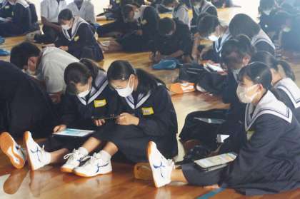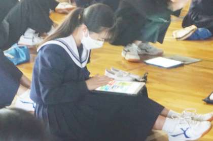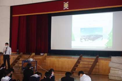 6時間目に、2年生が学年集会を行いました。自然教室の下見に行った高村先生が、映像を使って、クイズを出しながら、楽しく説明していました。2年生の生徒たちは、1月の自然教室が、待ち遠しく感じたことと思います。