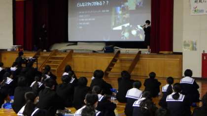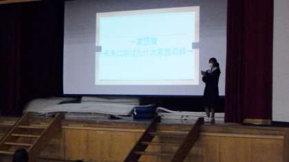 朝、1・2年生の合同集会が行われました。2年生リーダーから、「1・2年生で3年生のために素敵な会を作ろう」と話があり、1年生に対して、祝う会の説明をていねいにしていました。スローガンも決まり、少しずつ準備が進んでいきます。
