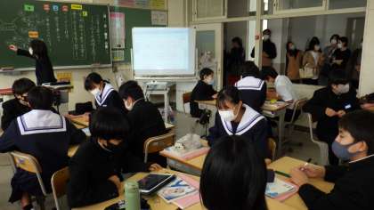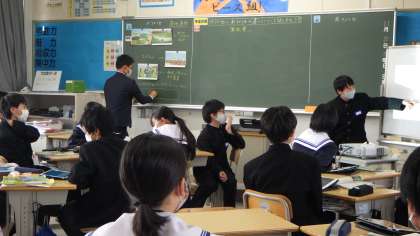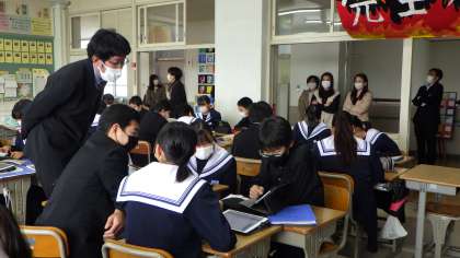 11月30日(水)の3時間目、授業参観を実施しました。タブレットを活用して自分の考えをまとめている姿、大型スクリーンに自分の意見を映し出して学級全体に説明している様子、思考ツールのマッピングを使って、「より伝わる言葉」を考え合っている取り組みは、いかがでしたか。ICT機器の活用を保護者の皆さんに見ていただくことを意識して、多くの授業は展開しました。今回は、1・2年生と特別支援学級での実施とし、3年生は12月と1月に進路相談会があるため、授業参観は行いませんでした。参観人数を限定し、健康チェック表を提出していただくなど、感染対策に協力していただき、ありがとうございました。