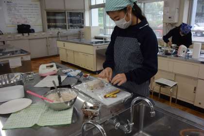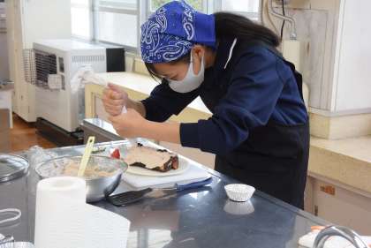 12月17日(土)、家庭部が調理室でケーキ作りに取り組みました。自分が食べるケーキを自分でつくり、おいしくいただきました。