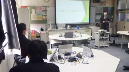 特別支援学級の道徳では、デジタルシチズンシップを題材にして授業が進められました。生徒のタブレットに、「実際にSNSで流れた誤った情報」が先生から送られ、その情報のおかしな点や受け取ったときの正しい対応を考え、仲間に伝えました。