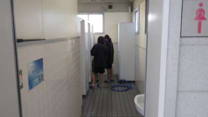 各部が年末の大掃除を行っていました。道具の整備やグランド、体育館をきれいにするとともに、1月に行われる「二十歳のつどい」で新成人が本校を訪れるので、体育館トイレやテラス、グランドからのぼるスロープなどを掃除してくれていました。