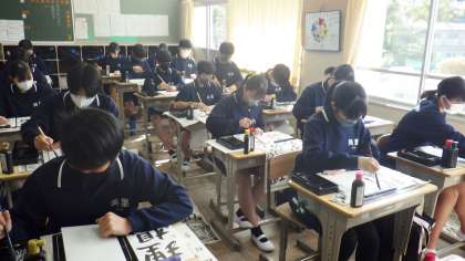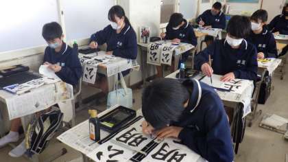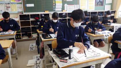 1時間目に学活を行い、2・3時間目は全校で書き初めをしました。集中して用紙に向かい、12月の授業や冬休み中に練習してきた成果を発揮していました。