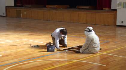 1月9日から約1か月間、体育館の床の修繕を行います。きしみ、ささくれなどがあって危険な箇所を修繕しています。最終的には床の表面をきれいにし、ラインを引き直してワックスを塗ってもらいます。体育の授業や部活動で生徒に不便な思いをさせてしまいますが、しばらく辛抱してください。なお、3月の卒業式後には、修道館(武道場)の床の修繕を2週間ほど予定しています。