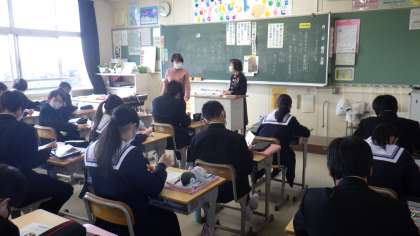 1年生の国語の授業をのぞくと、司書さんが授業に参加し、故事成語について生徒たちに教えていました。