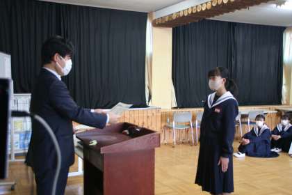 2年生代表意見発表と表彰伝達2