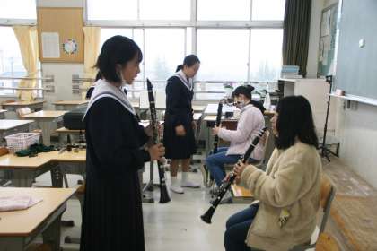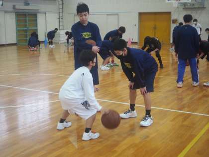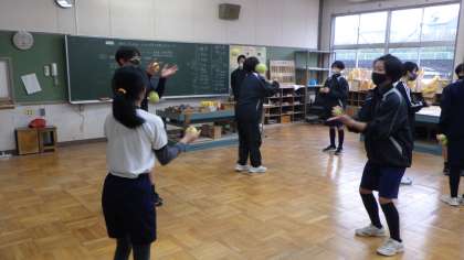 1月14日(土)、男子バスケットボール部、吹奏楽部、ソフトボール部が、小学生の希望者を対象に、部活動体験を行いました。男子バスケ部は体育館修繕のため、広川台小学校で、ソフト部は雨のため技術棟で活動しました。小学生は、緊張した表情で活動をスタートしましたが、だんだん慣れてきて楽しそうに活動していました。この活動は、地域学校共働本部が主催し、応募してくださったボランティアの方が、お手伝いや見守りをしてくださいました。また、今回はタブレットのFormsを活用して参加者を募りました。1月28日(土)にも、3つの部が小学生を招いて活動します。