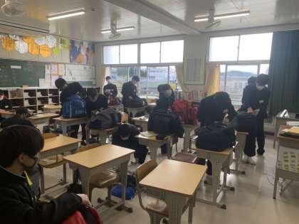 明日からに備えて、持ち物や日程の確認を行いました。密を避けるため、持ち物確認は男女別の場所で、日程確認はオンラインで実施しました。
