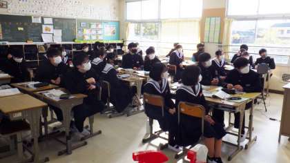 1年生の技術では、木工に取り組んでいました。3年生は、様子を見にいくたびに、落ち着いて授業に臨んでいるよう感じます。毎週水曜日の朝、恒例のミサトークの時間、2年生が活発に意見交換をしていました。