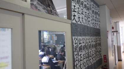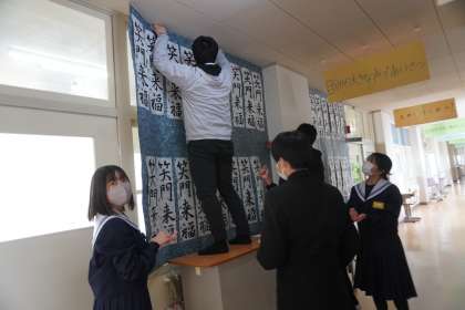 紹介が遅れましたが、現在、各クラスの廊下には書き初めが掲示されています。生徒たちが手分けして掲示を手伝ってくれました。今後、機会をつくって入選者の表彰を行いますが、市2席、市3席に選ばれた素晴らしい生徒がいます。