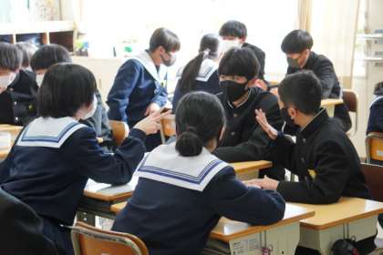 2年生は総合的な学習の時間に、3年生で行く修学旅行について、どんなことがしてみたいか考えました。また、修学旅行での1つのテーマとなる「SDGs」について、パワーポイントや動画を見ながら学習しました。