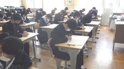2月16日(木)・17日(金)の2日間、3年生が最後の定期テストに臨みました。5教科のテストに一生懸命取り組んでいました。