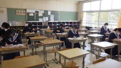 また、今日は、愛知県公立高校で一般選抜の学力検査が行われました。本日入試がない3年生は、学校で学習や奉仕活動を2時間行って下校しました。