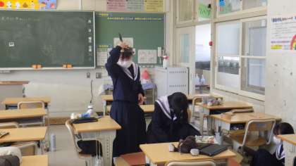 公立高校一般入試は、今日のBグループ面接で終了となります。3年生は卒業式に向け、体育館での学年練習以外に、教室でクラスごとに証書授与の動きなどを確認していました。1・2年生は、今週木曜日に実施する「卒業を祝う会」に向け、映像をつくったり劇で使う小道具をつくったりと、スタッフごとに活動を進めていました。