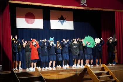 3月2日(木)、卒業を祝う会を行いました。1・2年生が一生懸命準備してきた成果が十分発揮できた、とても素敵な会となりました。きれいに飾り付けられた会場に3年生が入場すると、楽しいオープニング、各スタッフの取組の紹介や凝った小道具を使っての劇・工夫された幕間、生徒会役員・進行役・盛り上げ役の軽妙なやりとりなどが次々と行われ、どれをとっても最高。3年生の客席は笑顔であふれていました。また、転勤された先生からのメッセージビデオと思い出映像が、心を打ちました。後半は、1・2年生からの心のこもった呼びかけと3年生からの御礼があり、美しいアーチの下を、拍手を浴びながら3年生が退場していき、素敵なエンディングを迎えました。3年生の机の上には、心のこもったプレゼントが置かれており、最後まで3年生を喜ばせてくれました。