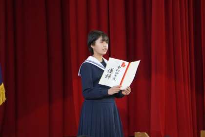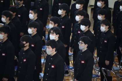 予行練習は、全学年が体育館に入って行いました。入場から退場まで緊張感をもって通し練習をしました。卒業式当日は、1年生がオンラインでの参加となるため、1年生代表が予行練習用の送辞を担当し、思いを伝えました。また、答辞を担当する3年生は、予行練習バージョンの内容にかえ、後輩への思いを語りました。本番同様、歌も歌い、全校生徒で美里の伝統をつなぐ時間となりました。