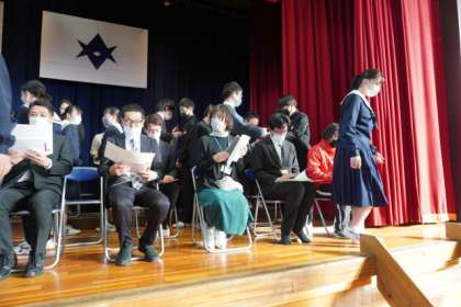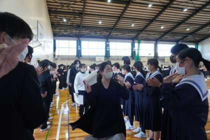 本日の授業後、3年生が感謝の会をひらいてくれました。3年部以外の教員が壇上に登り、代表生徒の言葉と素敵な歌のプレゼントに続き、感謝状と寄せ書きをいただきました。午後の日差しが差し込む体育館で、胸がジーンとしました。3年生に囲まれながら退場すると、先生たちはみんな、寄せ書きを一生懸命読んでいました。