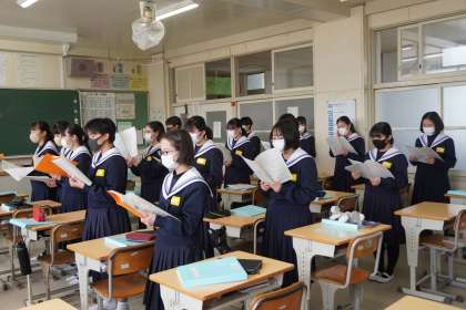 現在、1・2年生ともに合唱を頑張っています。音楽の授業はもちろん、放課も歌声を合わせています。卒業式での3年生の歌声が、刺激になっていたらいいなと感じます。