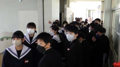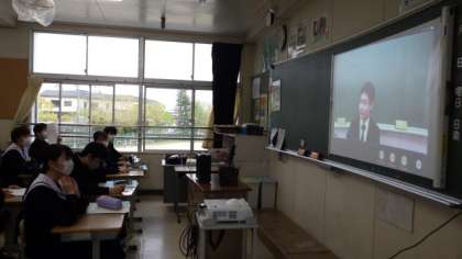 今日までは学級活動を中心に生活しています。1年生は、学校見学を行い、担任の先生の引率で校内をまわりました。3年生は、他学年が体育館を使用していたため、オンラインで進路についての学習を行いました。