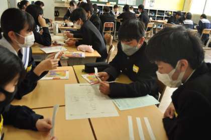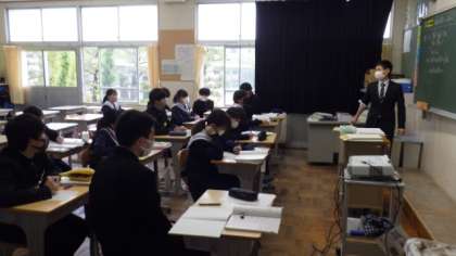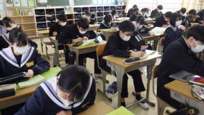 タブレットの新年度設定が完了し、生徒が授業などで活用しています。英語の授業では、タブレットで発音を確認している様子がみられました。3年生の数学は、1時間、オリエンテーションを行った後、すぐに学級を半分に分けての少人数授業を開始しています。今日の道徳は、全学年共通の資料で行い、学級の仲間の良い点を探し、お互いに伝え合っていました。今年度赴任された先生から、「生徒が活発に意見を発表し、積極的に取り組んでくれ、授業がやりやすいです」と、うれしい感想を聞くことができました。
