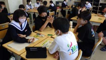 今週月曜日の先生たちの勉強会で、今年度赴任してきた先生が、2年生の授業研究を参観した感想として、「美里中の生徒たちは、指示が出てすぐに班での話し合いに取り掛かれることに感心し、ミサトークが生きているなと感じました」と述べていたのがうれしかったです。