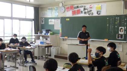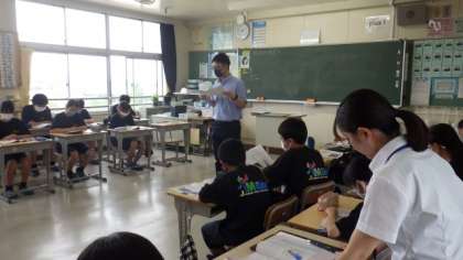 給食後、1年生の教室では、給食を食べて元気もりもりの生徒が、道徳の授業に取り組んでいました。