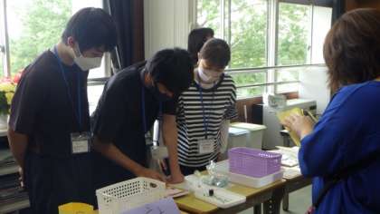 特別支援学級が、総合的な学習の時間の一環として、自分たちで作成したコースターや入浴剤などの販売を行いました。対象は、教職員や地域の方々です。今回は、新商品の箸置きとビーズアクセサリーが登場しました。販売を通して、お客さんとのコミュニケーションの大切さを学びました。地域学校協働本部が募集したボランティアに応募してくださった育友会役員や地域の皆さんが、献身的にサポートしてくださり、とてもありがたかったです。