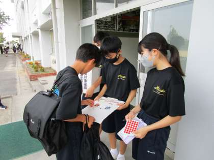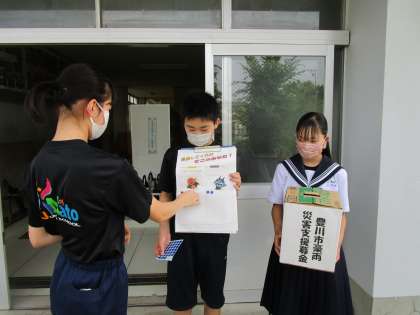 今月初めの豪雨により被災した豊川市を支援するため、福祉委員会が募金活動を行っています。明日まで、登校時に福祉委員が昇降口に立って呼びかけをします。